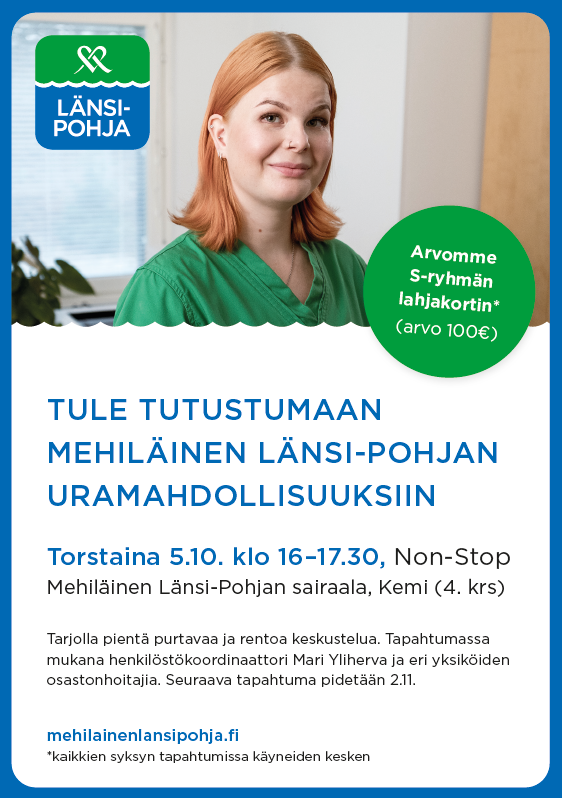 Tervetuloa tutustumaan Mehiläinen Länsi-Pohjan uramahdollisuuksiin to 5.10. klo 16-17.30