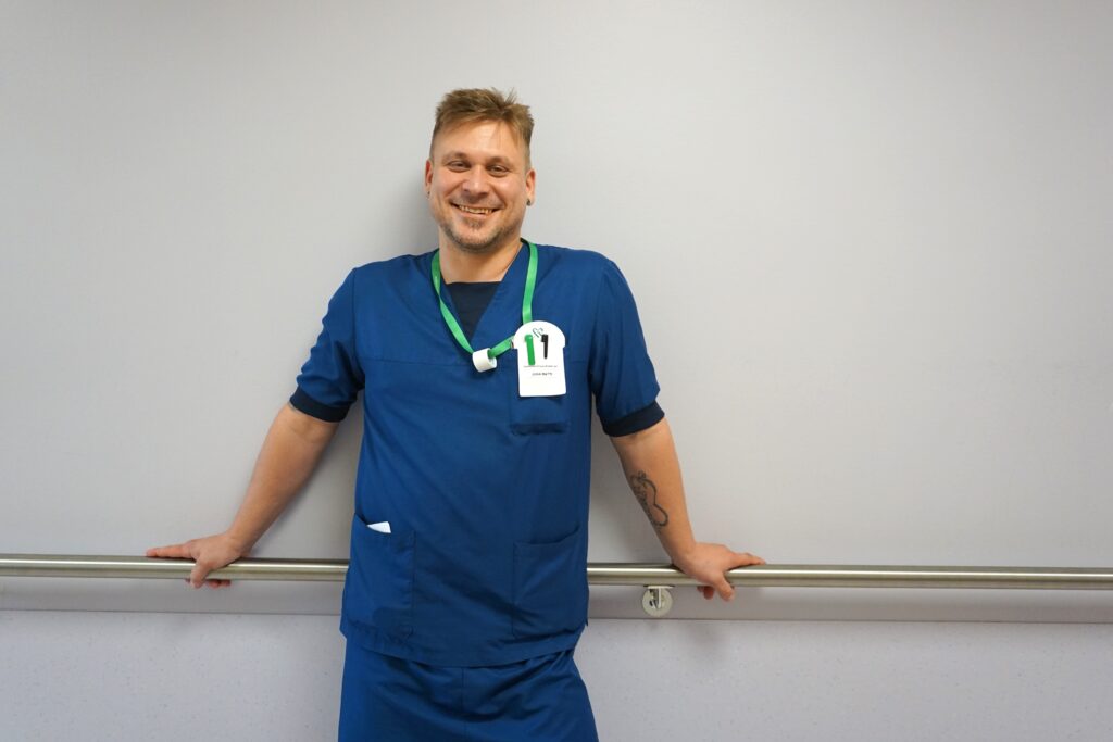 – Tavoitteenani oli saada kesätyön kautta kokemusta ja varmuutta omaan tekemiseen sekä päästä kokemaan ja näkemään osastolla työskentelyä. Osastolla 5B pääsin suoraan sairaalan sykkeeseen. Työpäivät alkoivat raportilla, ja vastuupotilaat jaettiin vuoron kesken. Tehtäviin kuului muun muassa mittauksia, katetrointeja, pesuja ja asentohoitoja sekä läsnäoloa potilaiden kanssa. Työyhteisöltä sain arvokasta apua ja tukea aina kun sitä tarvitsin. Minulle annettiin myös tilaa työskennellä itsenäisesti, Juha-Matti kertoo.